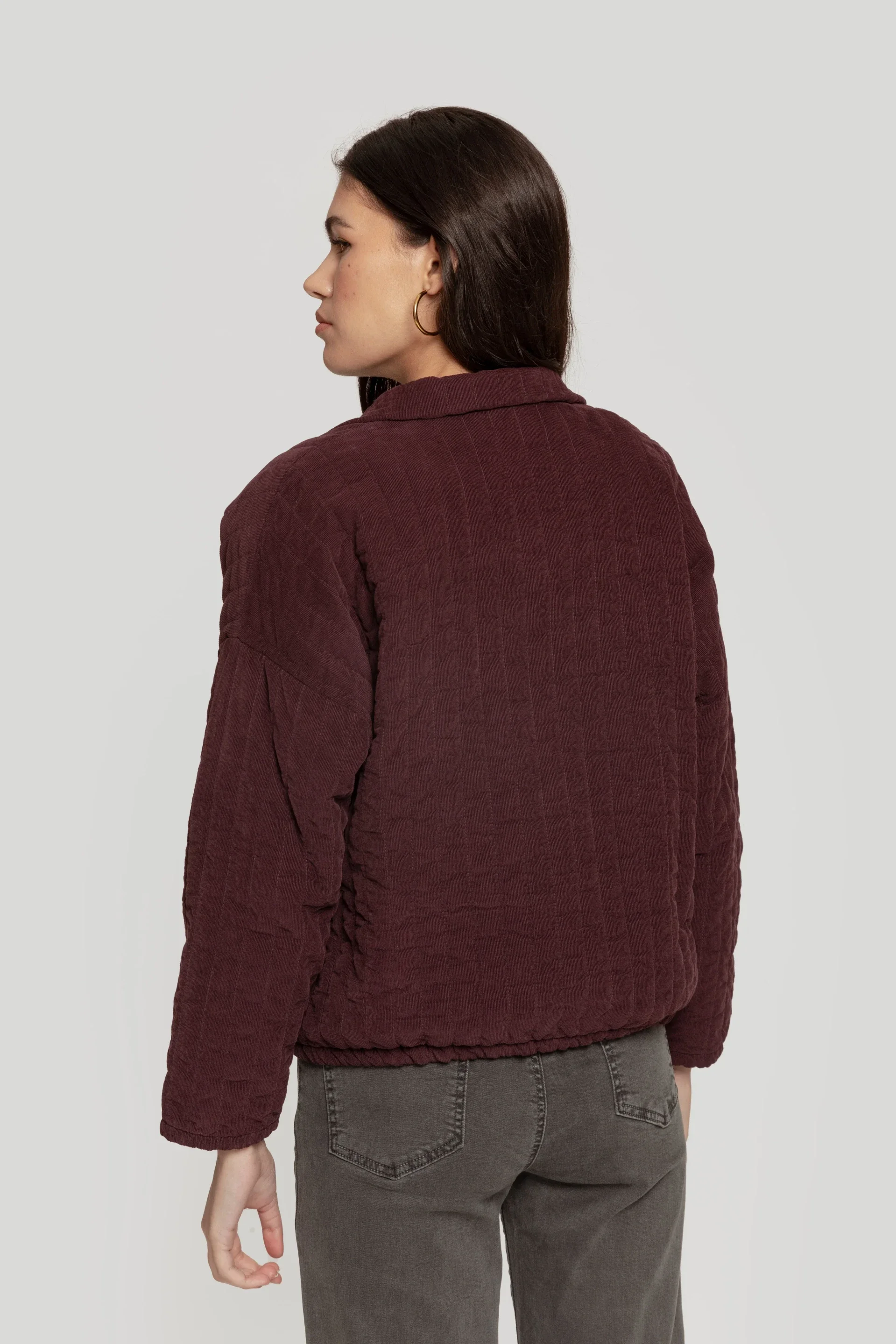 Tejido mezcla de algodón. Diseño bomber. Diseño oversize. Diseño recto. Efecto acolchado. Cuello bomber. Manga larga. Bolsillo solapa. Cierre de cremallera en la parte delantera. Bajo cordón ajustable. Costuras visibles. Talla modelo: S.
