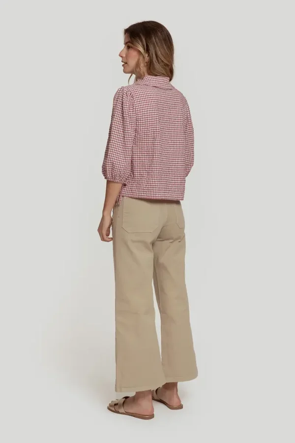 Tejido mezcla de algodón. Estilo tejano vaquero. Diseño lavado. Diseño recto. Diseño culotte. Tiro alto. Dos bolsillos de solapa. Cierre de botón y cremallera. Talla modelo: S.