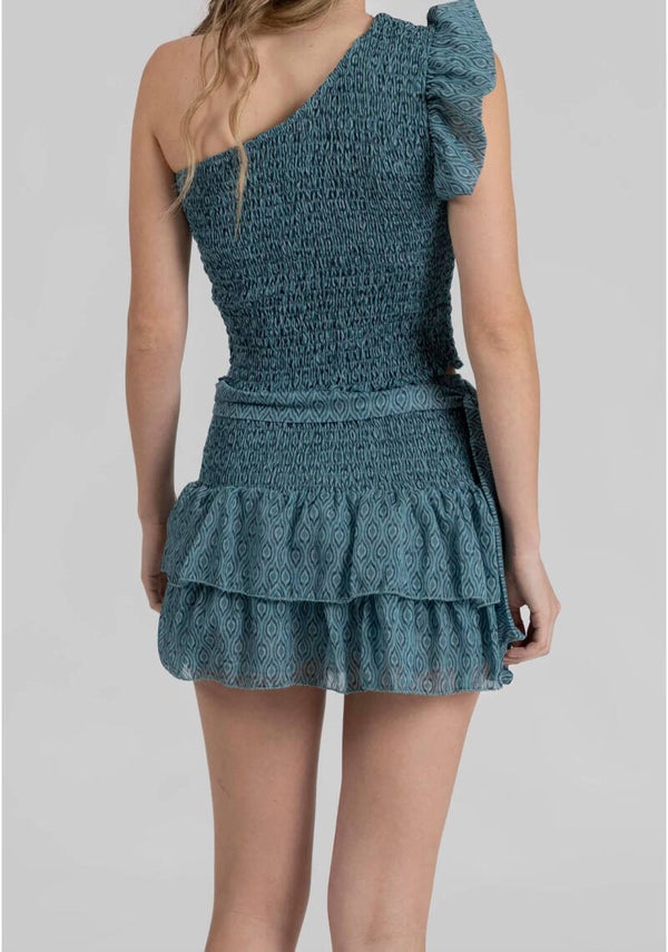 Tejido gasa. Tejido brillo. Diseño estampado. Diseño crop. Cuerpo nido. Manga asimétrica. Tira en cuello. Talla modelo: S.