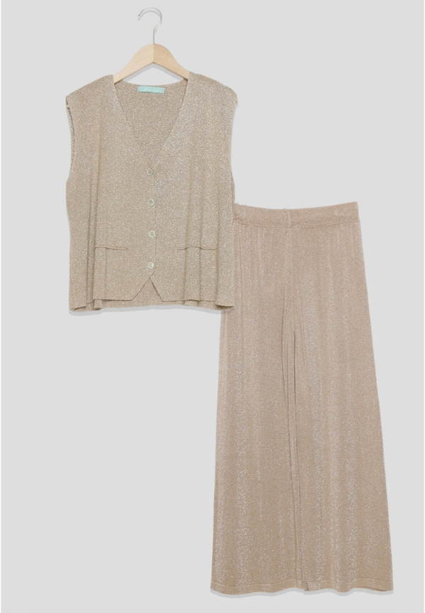 Pantalón tejido punto brillo. Cintura alta y elástica.