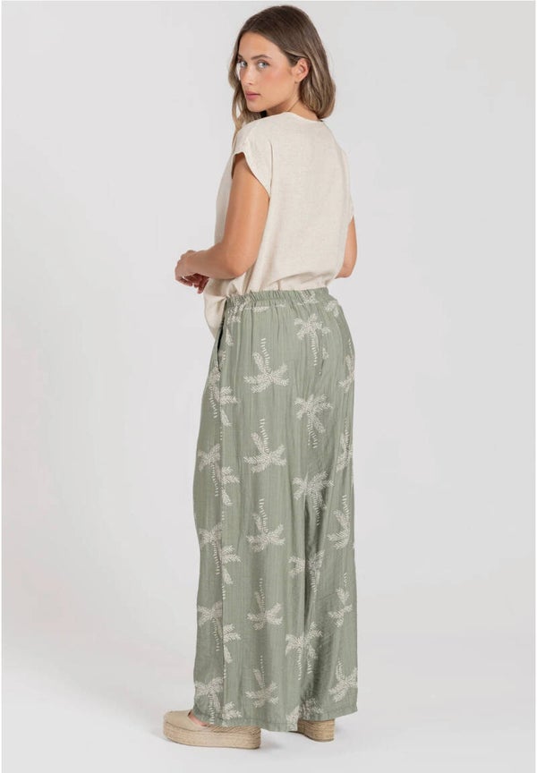Tejido fluido. Cintura alta. Bolsillos laterales. Cintura elástica.