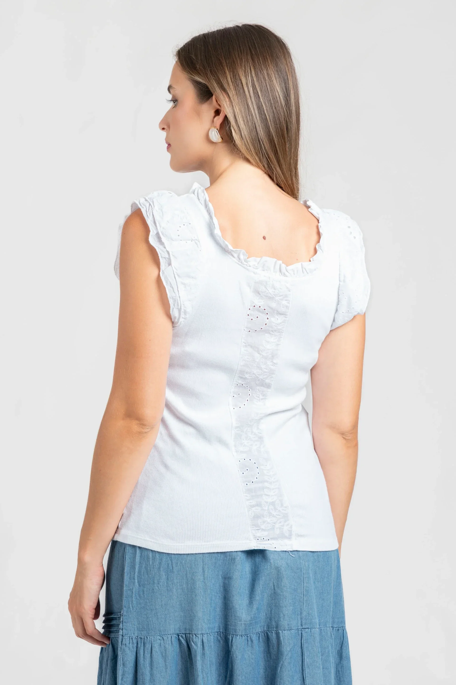 Tejido mezcla de algodón. Diseño recto. Diseño básico. Diseño ajustado. Tirantes anchos. Detalles bordados. Talla modelo: S. Altura modelo 1,66 m.