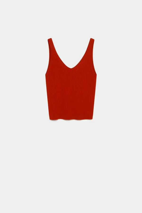 Tejido punto. Tirantes. Escote pico. Talla modelo: XS. Altura modelo 1,66 m.