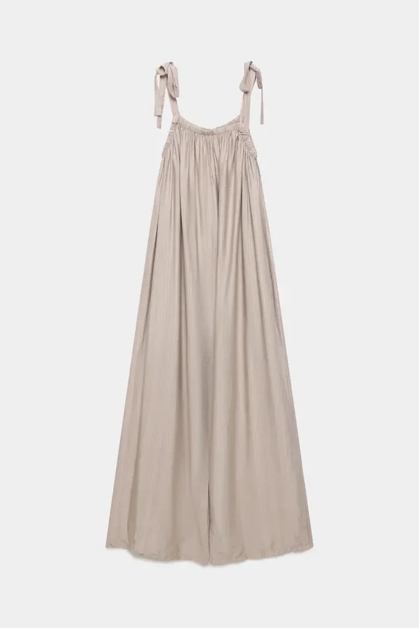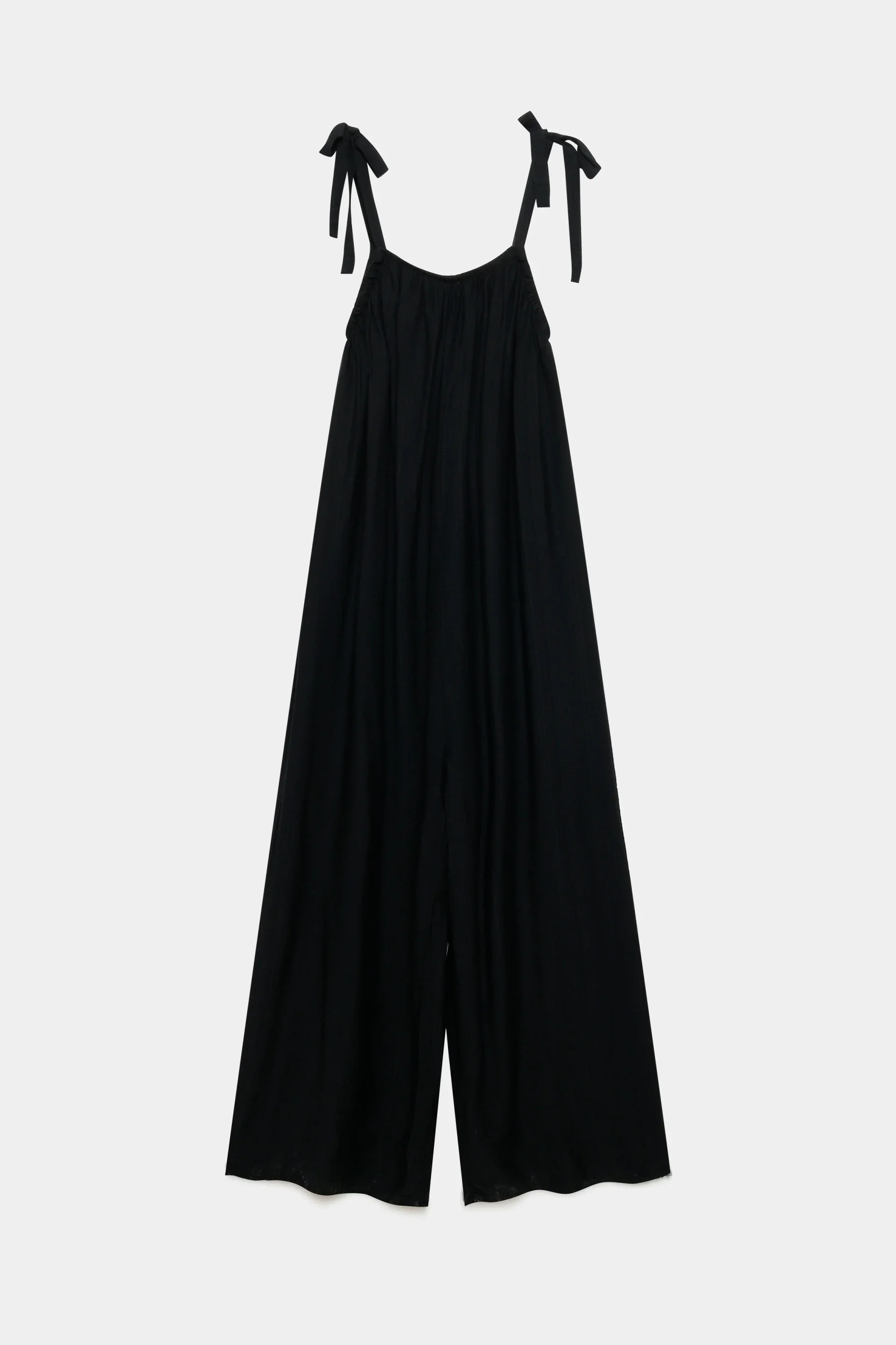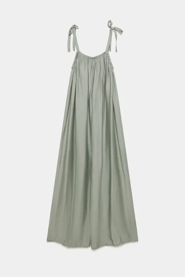 Tejido fluido. Tirantes ajustables. Escote redondo. Diseño amplio. Pernera ancha.