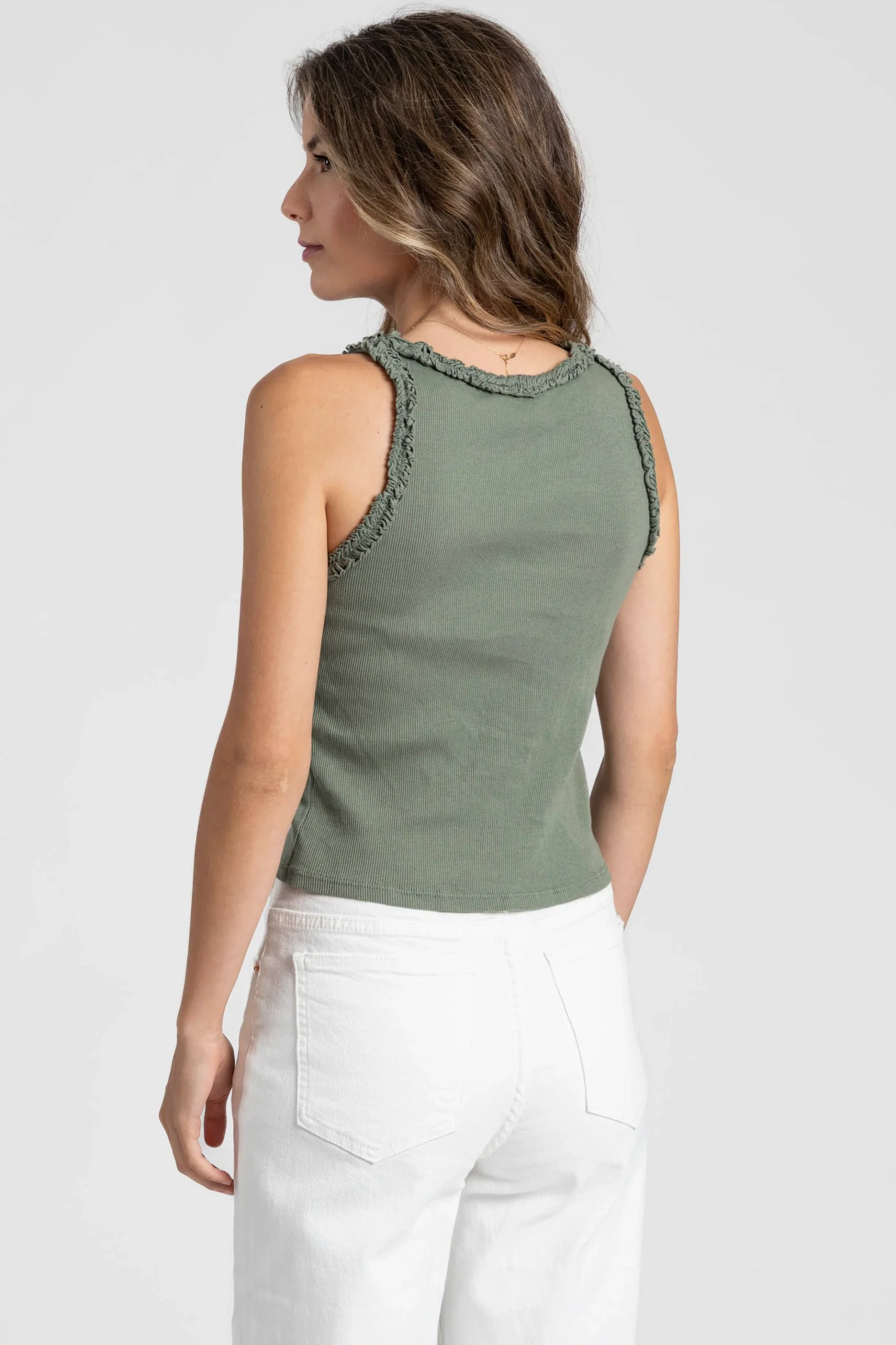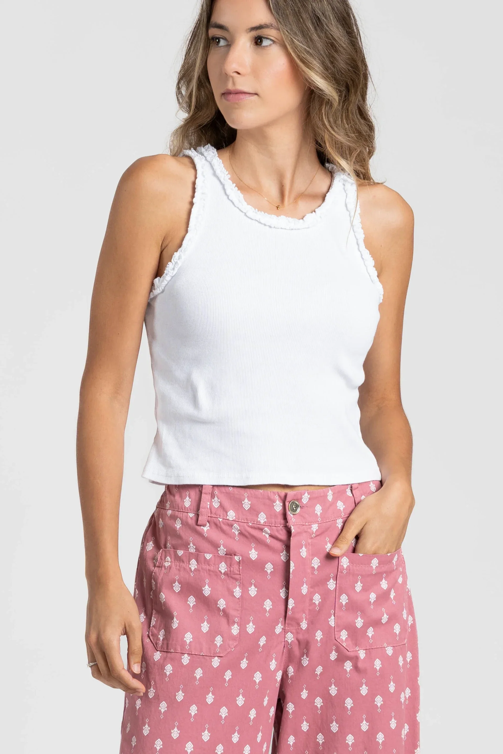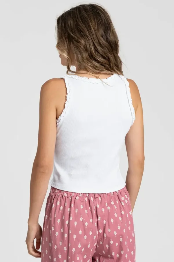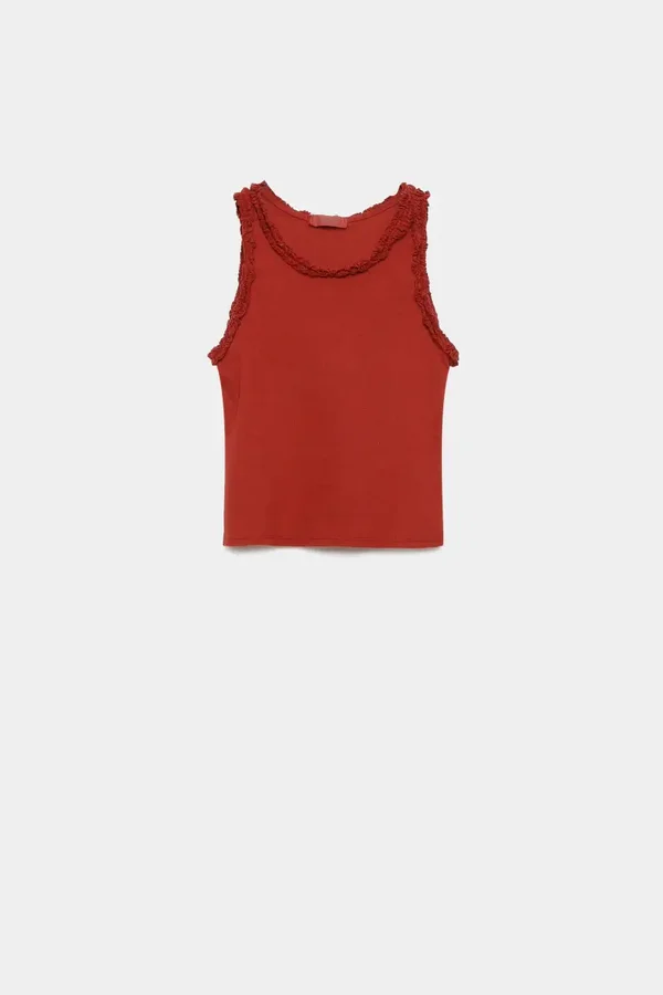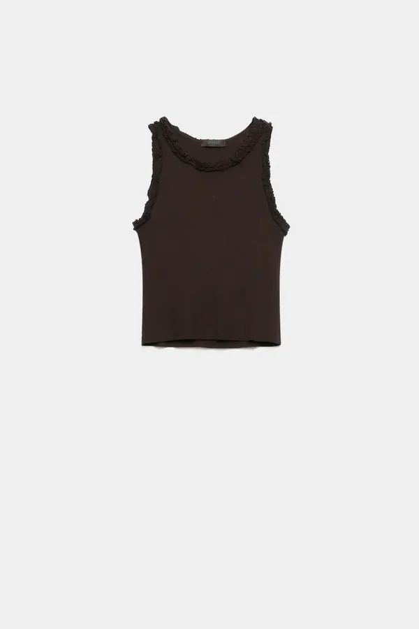 Tejido de algodón. Tirantes anchos. Cuello redondo.
