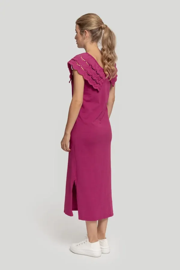 Vestido largo. Tejido ligero. Diseño básico. Diseño recto. Cuello pico. Cuello bobo. Sin mangas. Bajo con aberturas.Talla modelo: S. Altura modelo: 1,70 m.