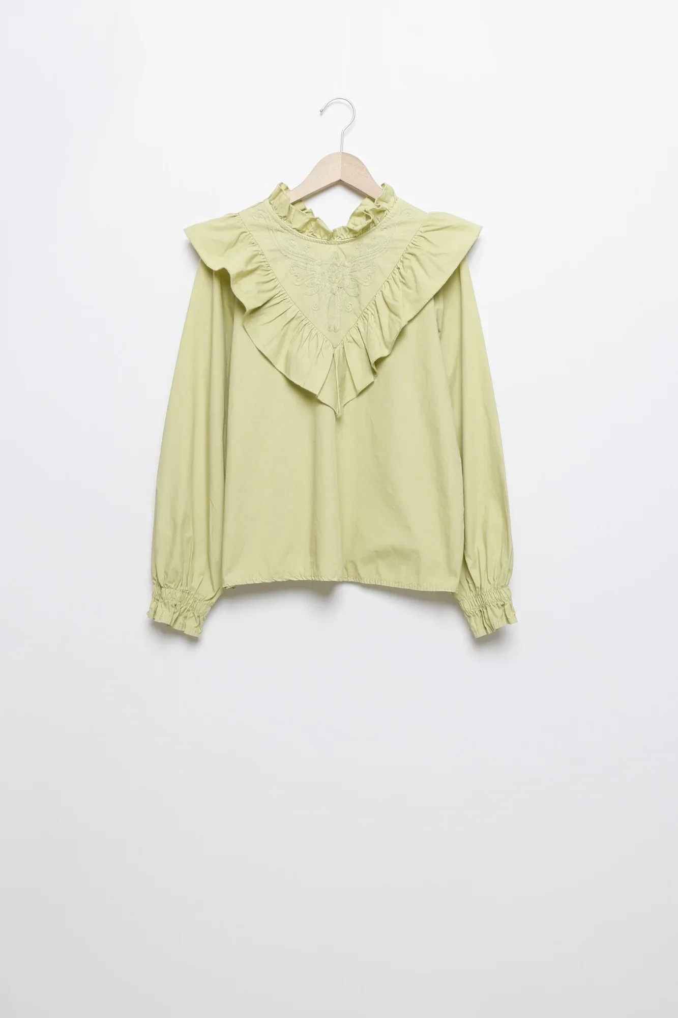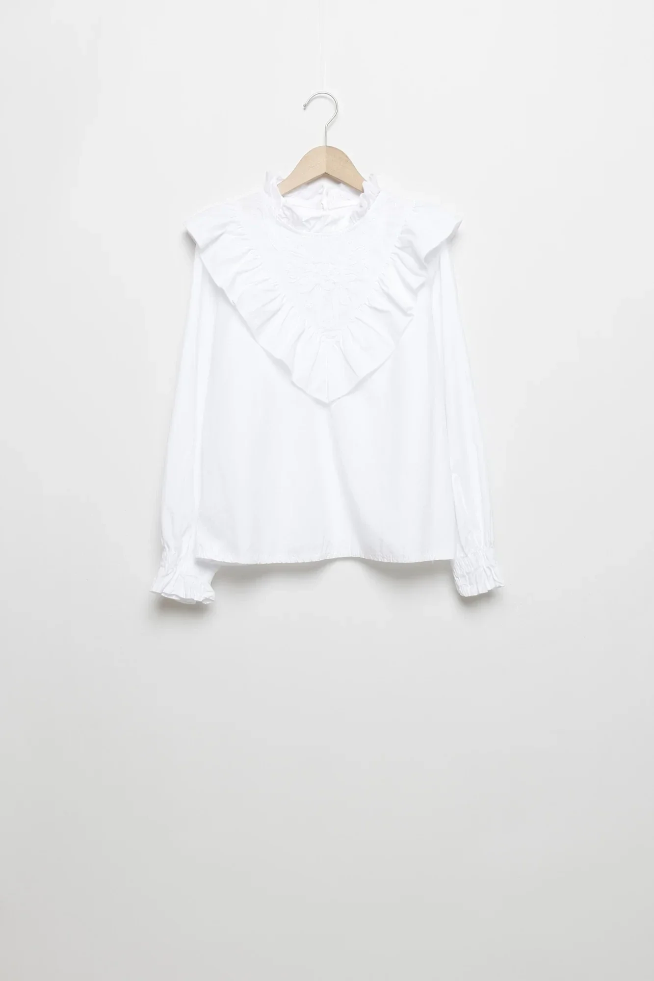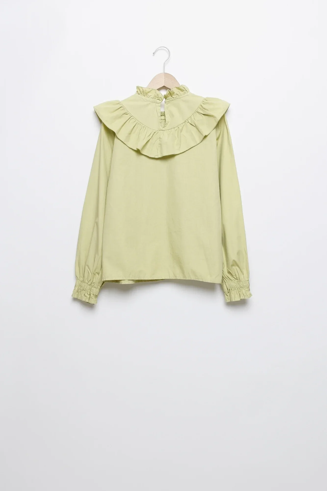 Tejido fluido. Diseño recto. Cuello redondo. Manga larga. Puño elástico. Abotonado en el cuello. Talla modelo: S. Altura modelo: 1,75 m.