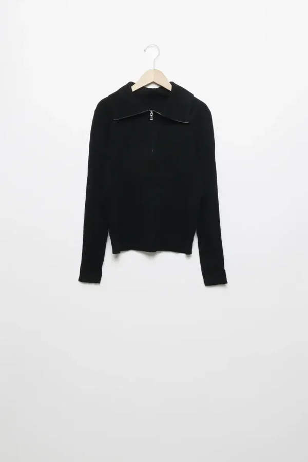 Tejido de punto. Diseño recto. Cuello polo. Cuello con cremallera. Manga larga. Hombros caídos.
