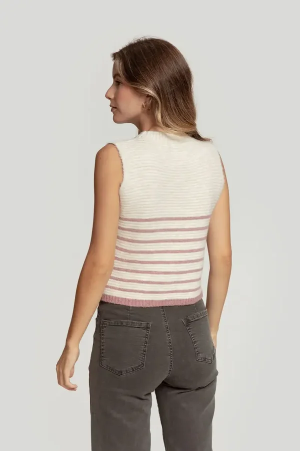 Tejido de punto. Diseño estampado. Diseño recto. Cuello redondo. Manga sisa. Terminaciones en rib. Talla modelo: S. Altura modelo: 1,70 m.