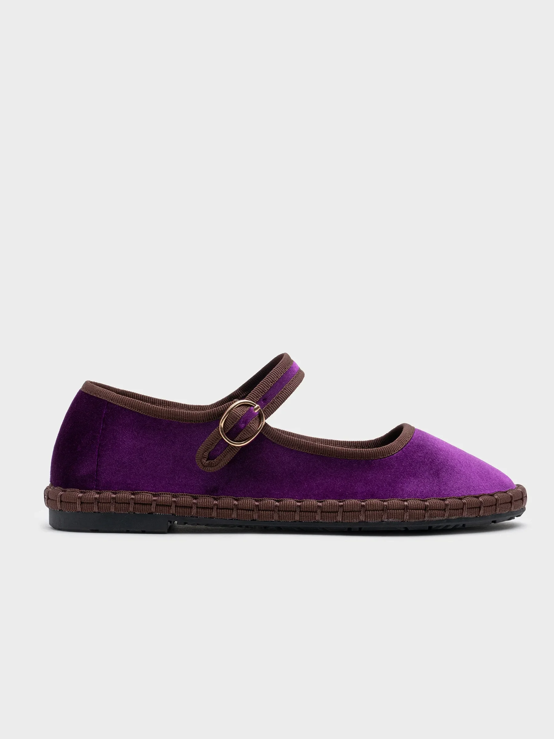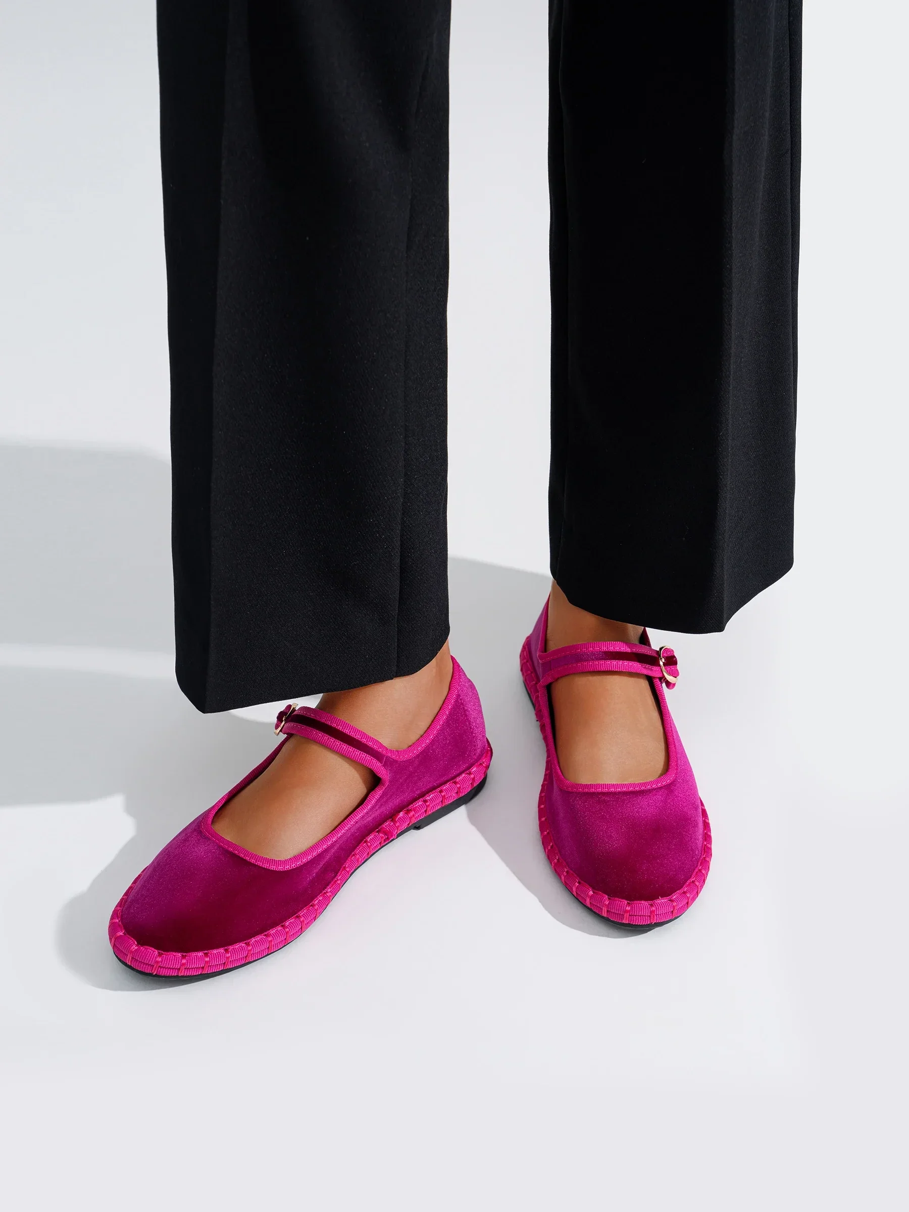 Zapato plano. Tejido terciopelo. Acabado en punta redonda. Cierre de hebilla. Suela plana. Suela de contacto antideslizante. Altura piso: 1.0 cm