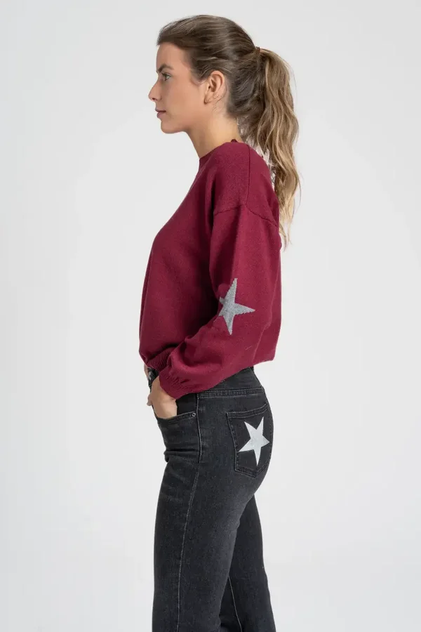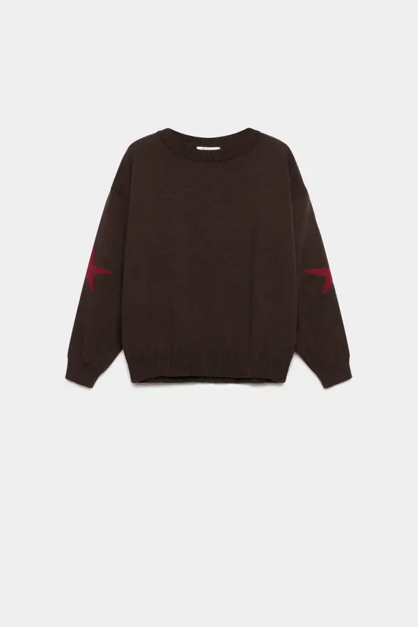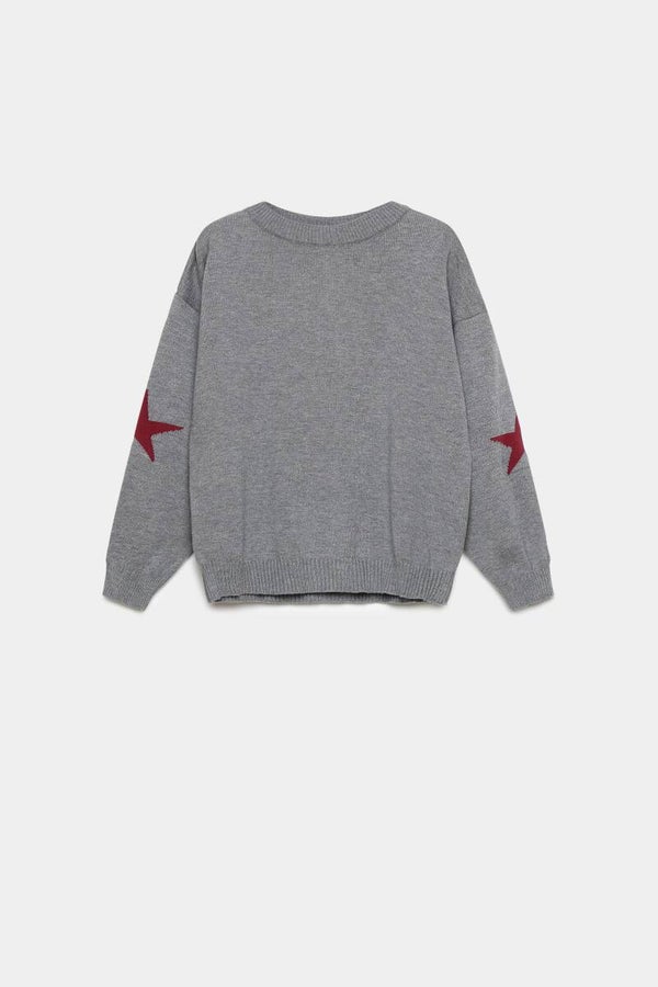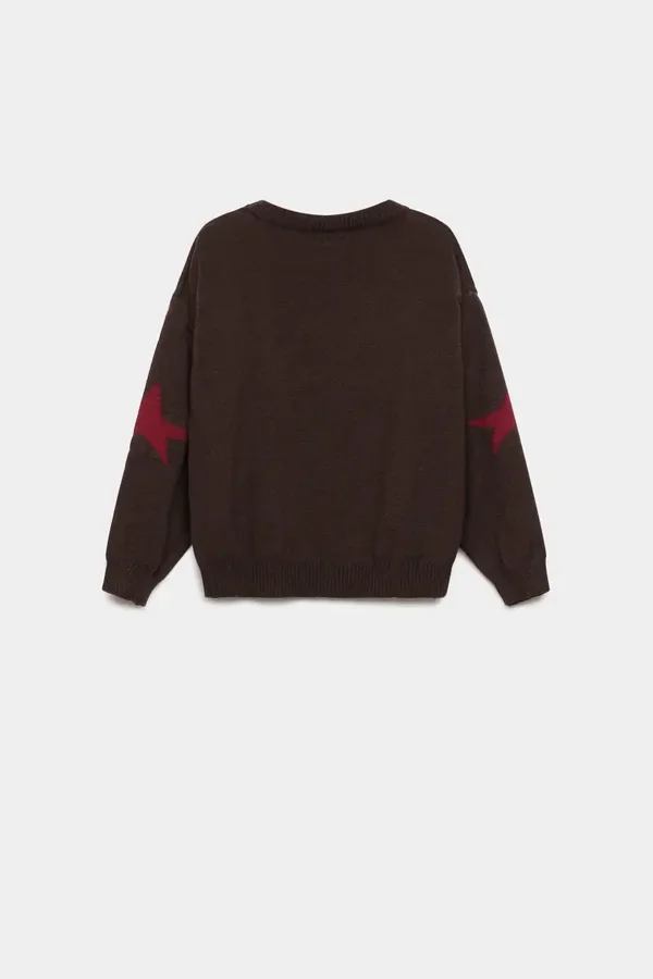 Tejido de punto. Cuello redondo. Manga larga. Detalle estrellas. Acabados rib.