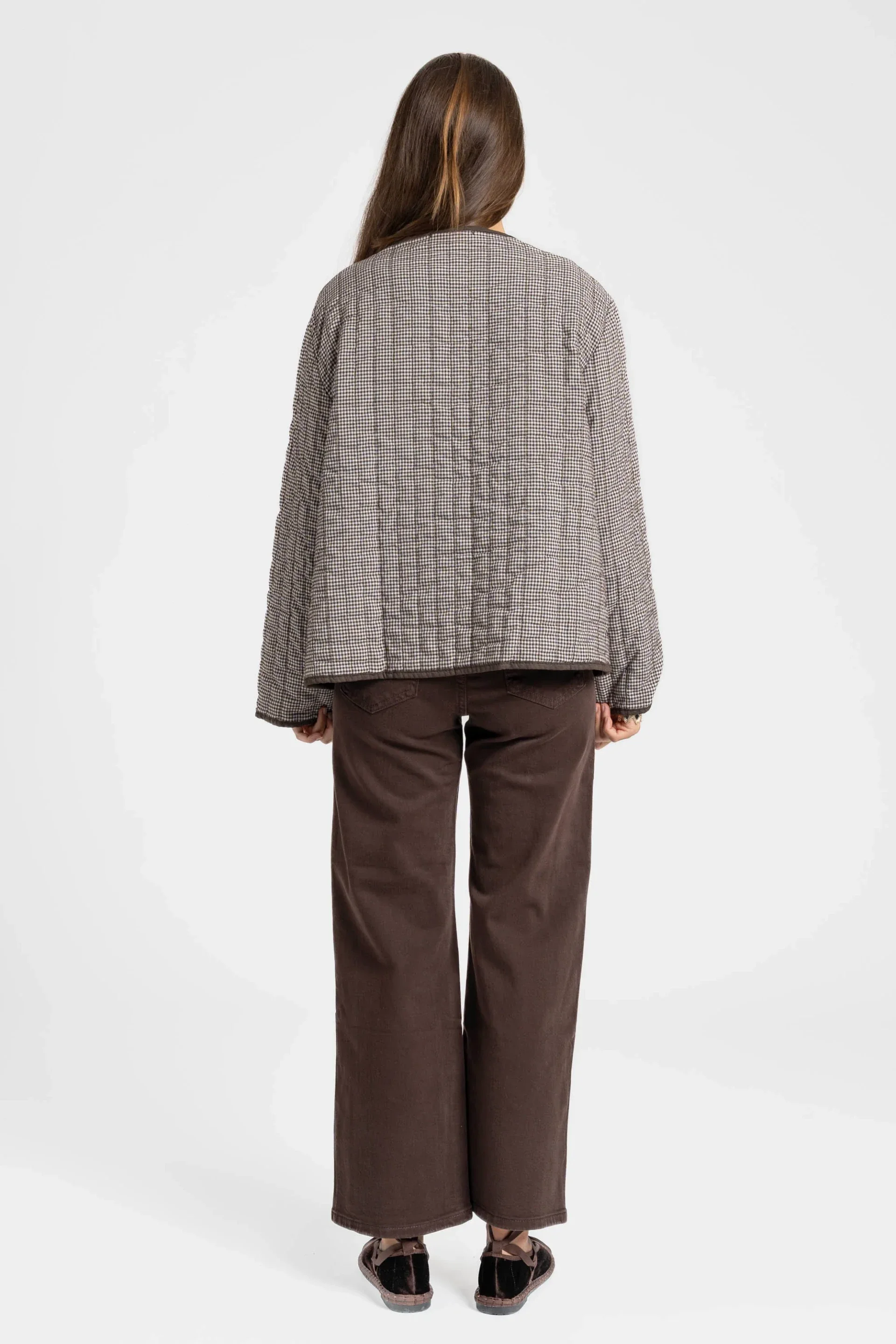 Tejido mezcla algodón. Cuello redondo. Manga larga. Cierre de botones. Bolsillos delanteros.