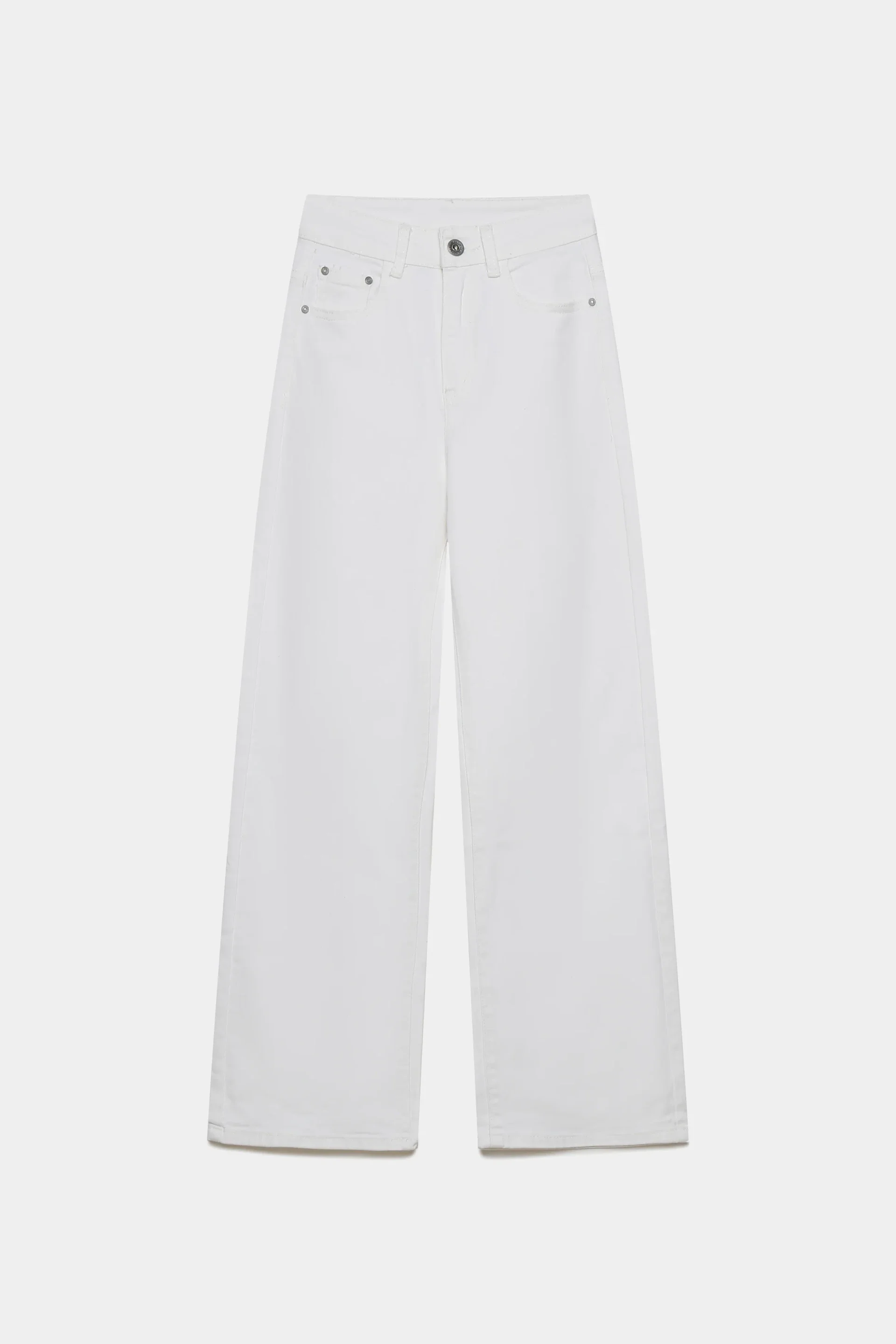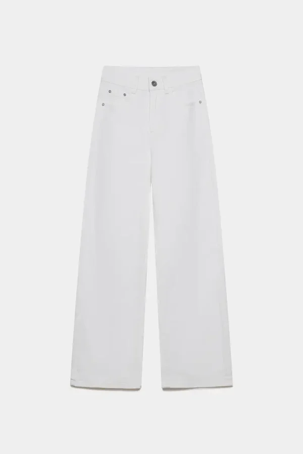 Tejido mezcla de algodón. Tiro alto. Cinco bolsillos. Cierre cremallera y botón. Diseño recto.