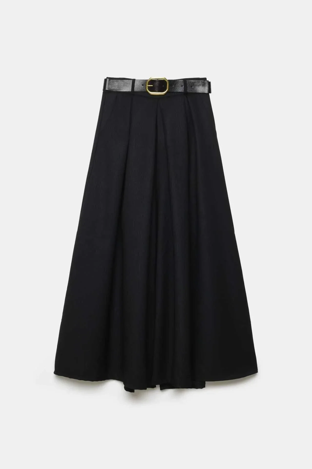 Pantalon de tiro alto. Super ancho. Cinturón combinado. Bolsillos laterales. Diseño midi.