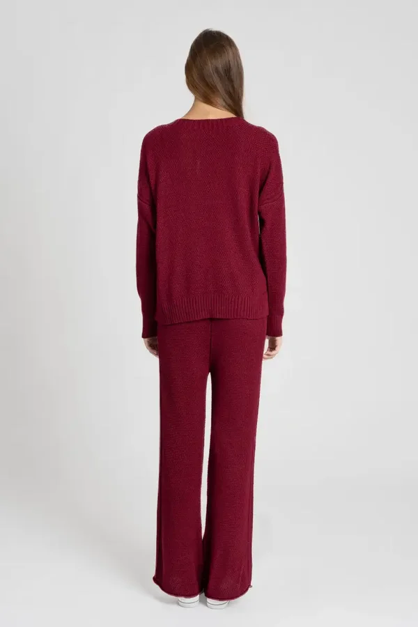 Conjunto de punto. Jersey de cuello redondo. Manga larga. Pantalón de tiro alto. Pernera recta. Talla única. Varios colores. Corresponde desde una talla S hasta una XL. Altura modelo: 1.80 m. Talla única.