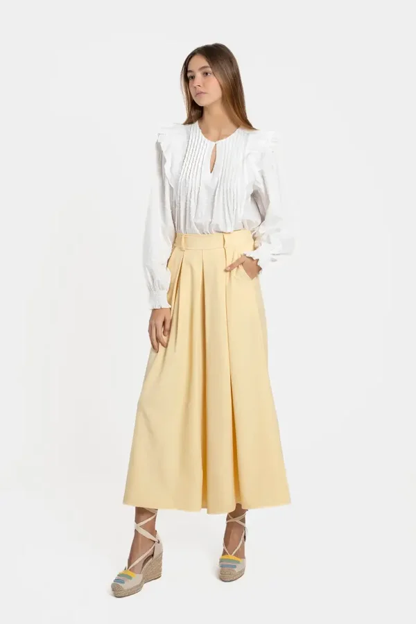 Pantalon de tiro alto. Super ancho. Bolsillos laterales. Diseño midi. CINTURÓN NO INCLUIDO.