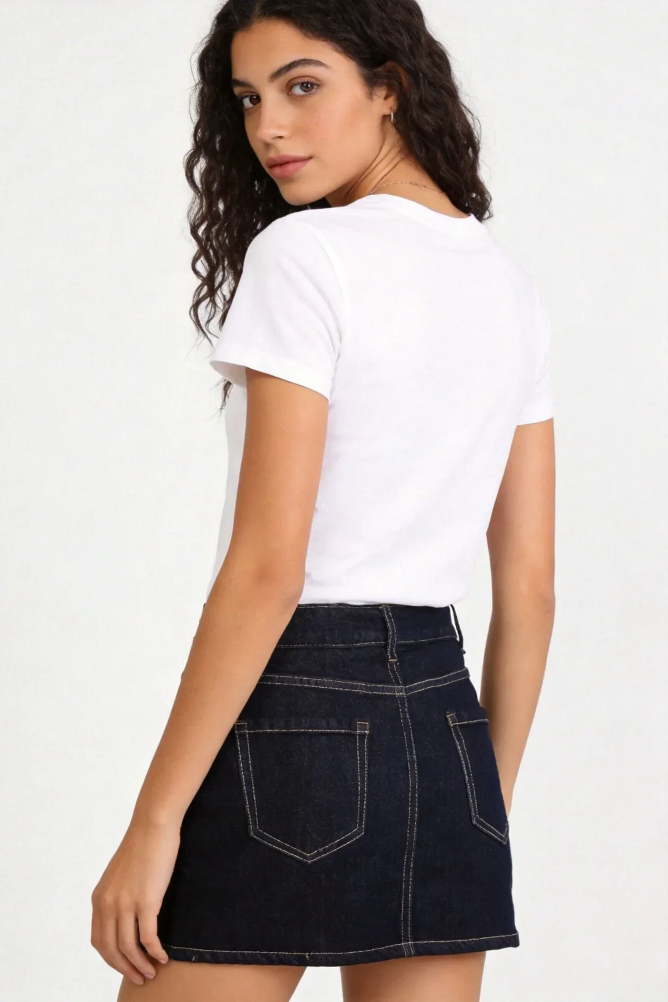 Falda denim con short interior. Cierre botón frontal y cremallera. Bolsillos en delantero y de tipo plastrón en espalda.