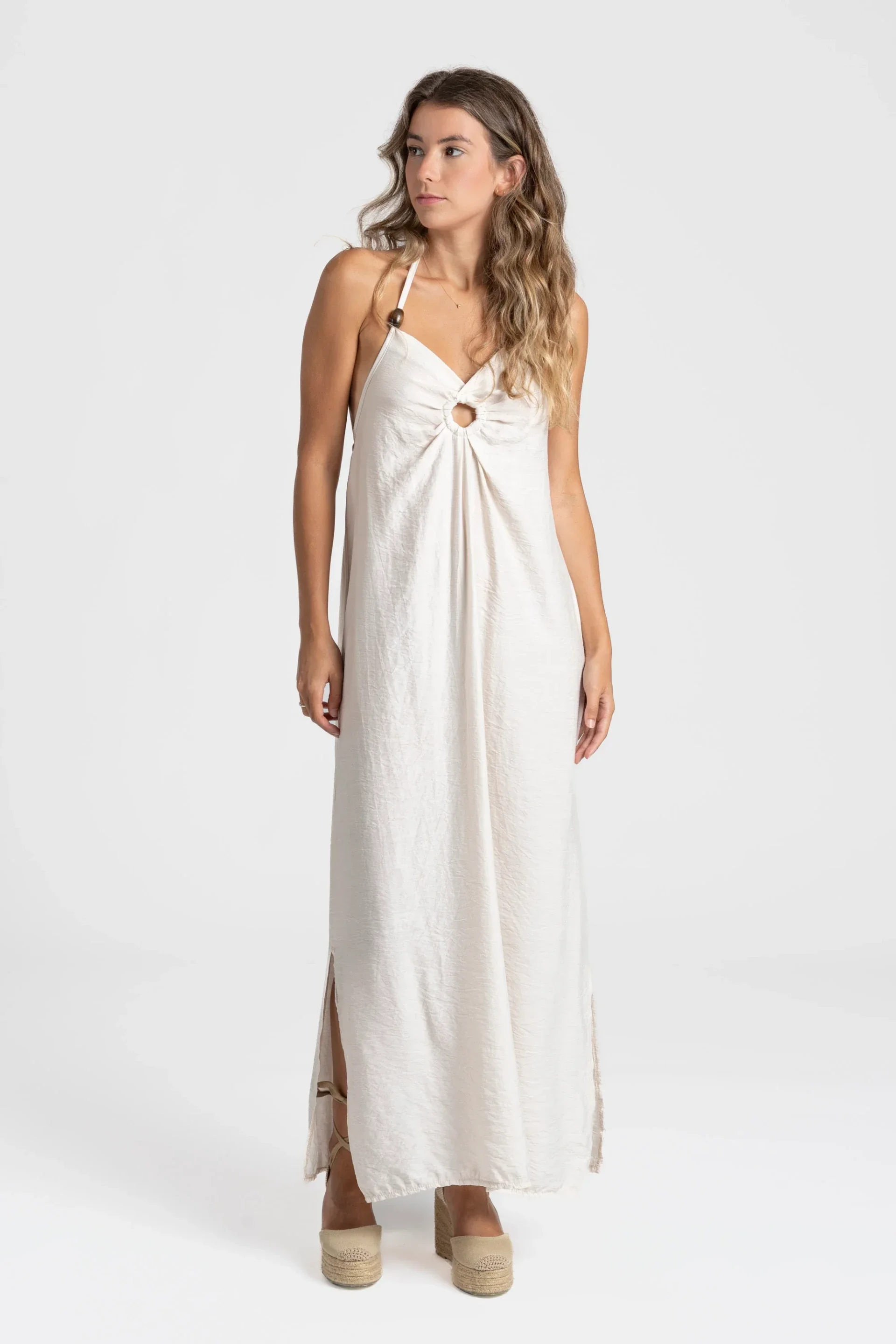 Tejido fluido. Cuello halter. Escote pico. Aberturas laterales.