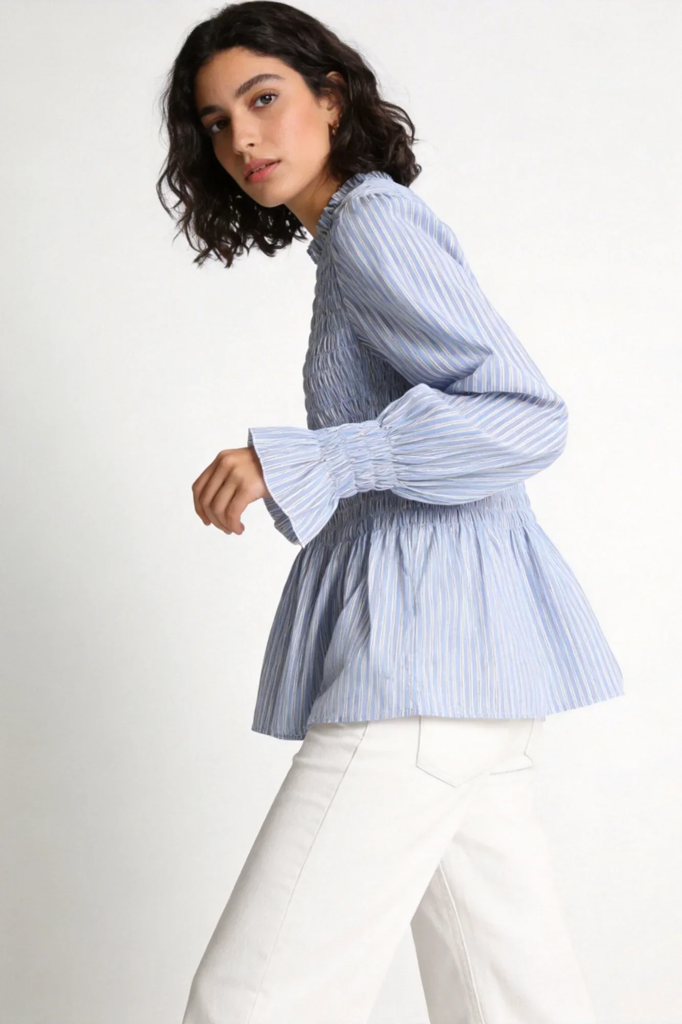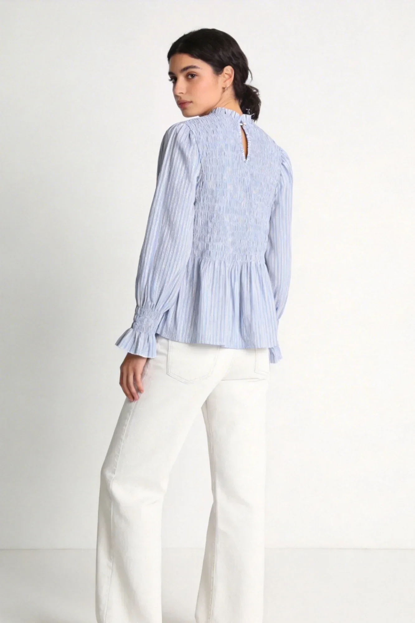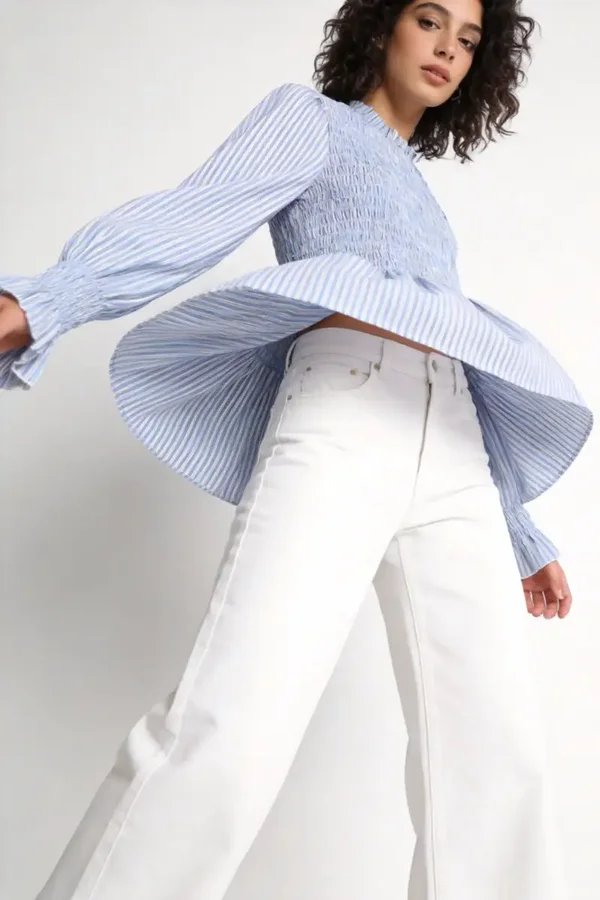 Tejido mezcla de algodón. Cuello redondo. Manga larga. Cierre con botón en el cuello. Cuerpo nido de abeja.