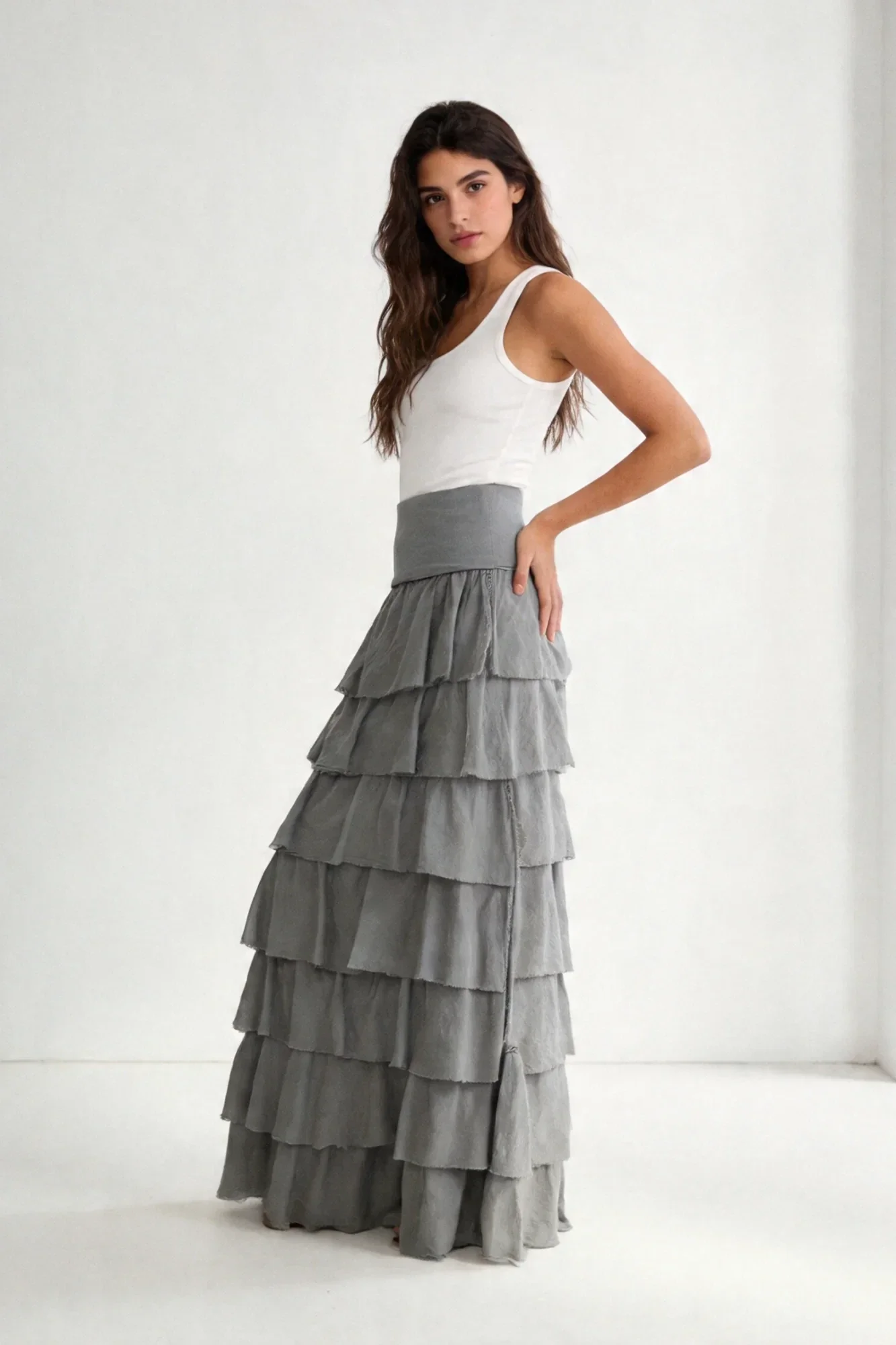 Tejido mezcla de algodón. Cintura elástica. Diseño largo. Capas fluidas.