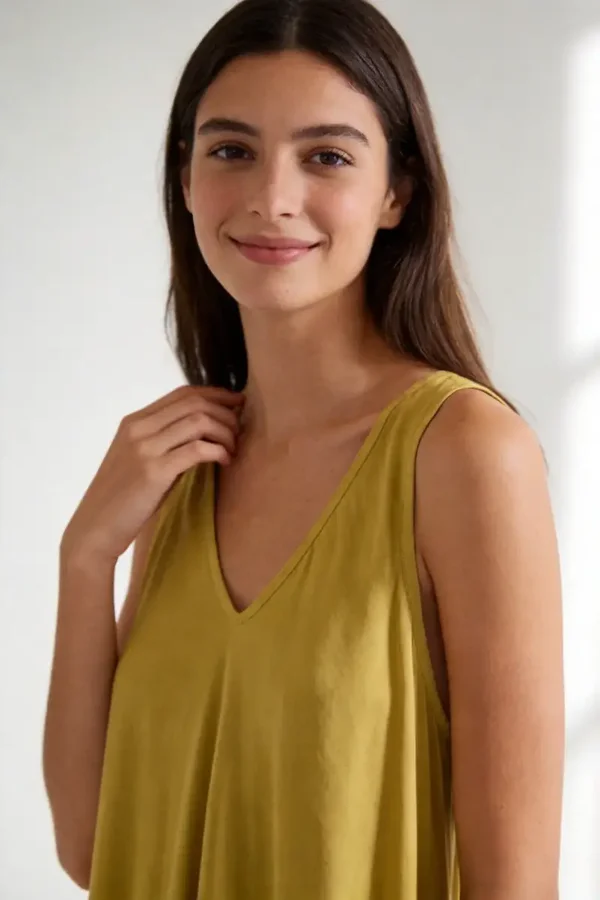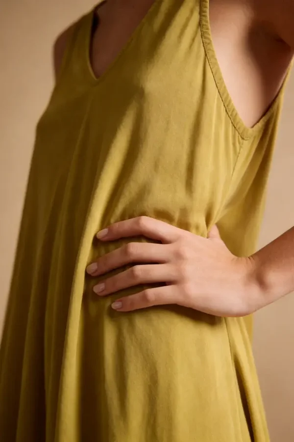 Tejido fluido. Tirantes anchos. Escote pico. Diseño ancho. Talla única. Largo 150cm. Desde una 34 hasta una 42.